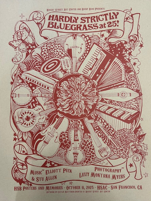 As a companion to the live music event at Haight Street Art Center, October 11th special musical guests Elliot Peck and Stu Allen. Designed by Caitlin Mattison, printed at HSAC.
